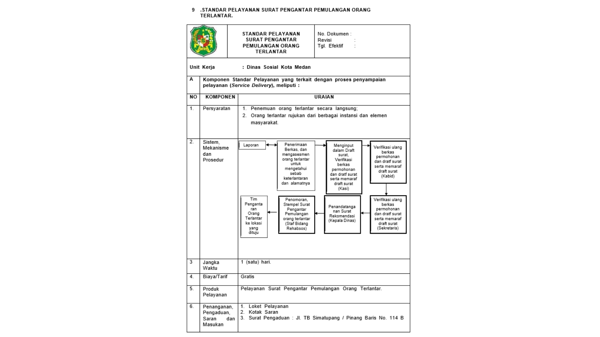 Standar Pelayanan Surat Pengantar Pemulangan Orang Terlantar