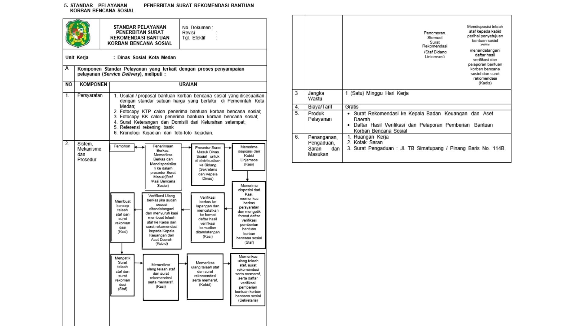 Standar Pelayanan Penerbitan Surat Rekomendasi Bantuan Korban Bencana Sosial